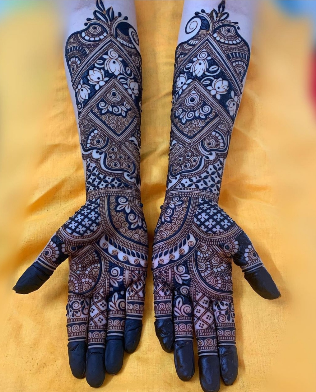 Arabic mehndi involves a mix of floral artwork along with geometric patterns, resulting in gorgeous, bold designs.
