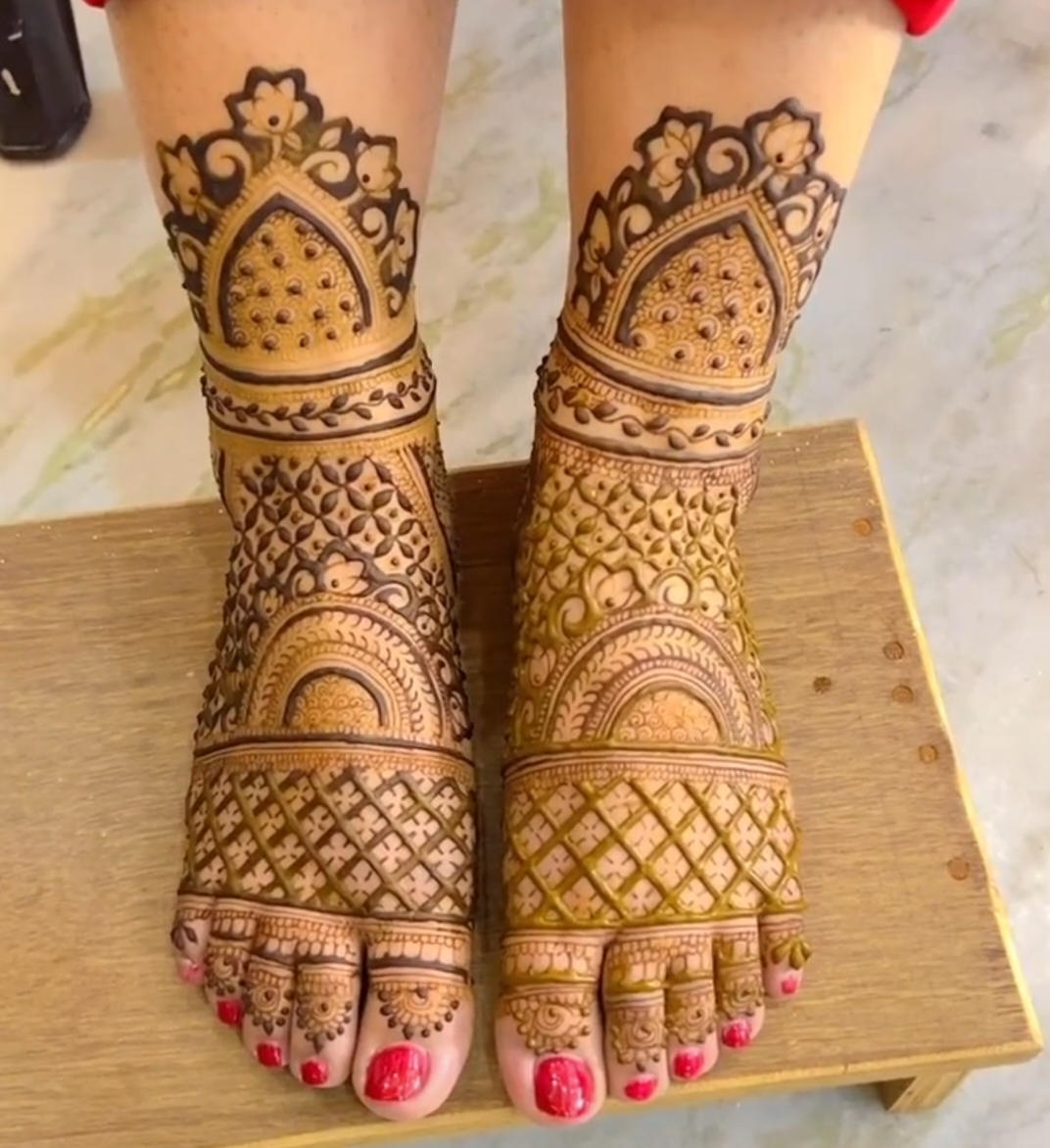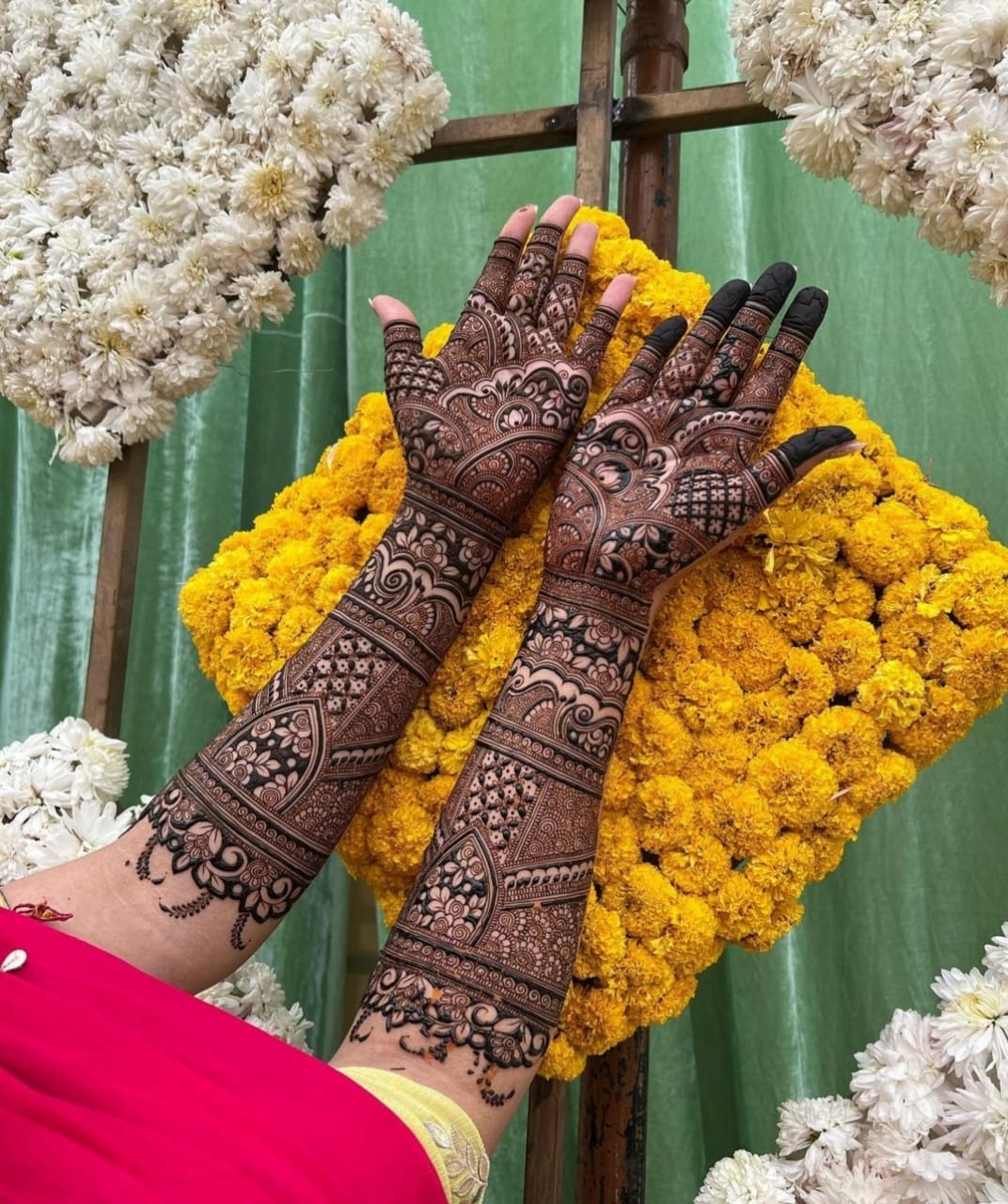 One such style of mehndi that’s trending is called New Madhuban Style mehndi design. The word ‘Madhuban Style’ originated in the india world and means intricate.